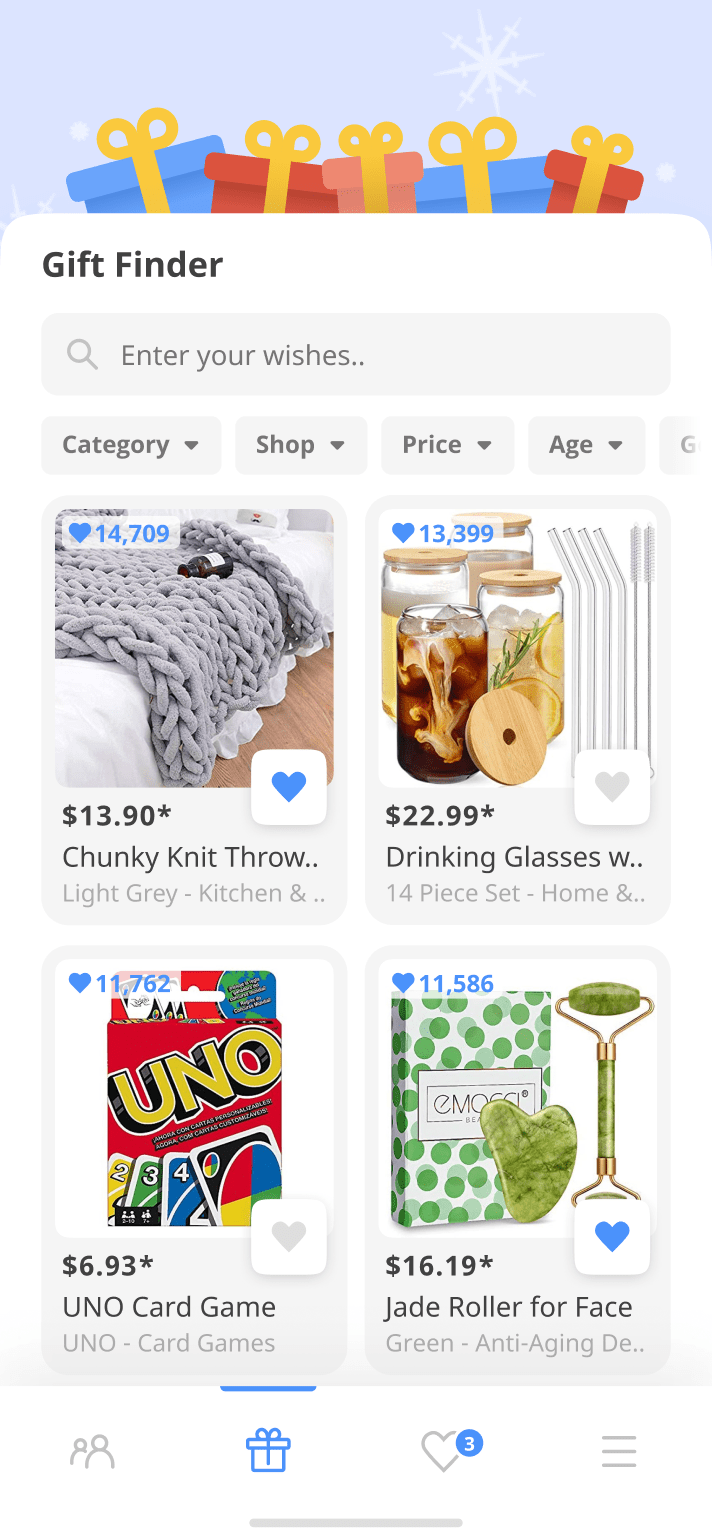 Não deixe que o seu Amigo Secreto adivinhe e faça já a sua lista de desejos. Precisa de inspiração? O descobridor de presentes dentro da app está recheado de milhares de grandes ideias de presentes do Amigo Secreto!