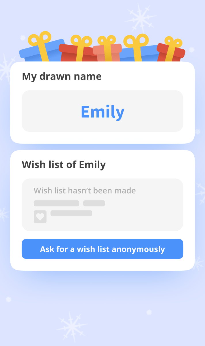 A aplicação n.º1 para o Amigo Secreto dos criadores da drawnames. 100% grátis, sem compras dentro da app, sem anúncios.